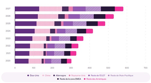 Die Daten sind in nominalen US-Dollar angegeben und umfassen die Projektionen für 2025 bis 2027. Quelle: Bloomberg, NEF.