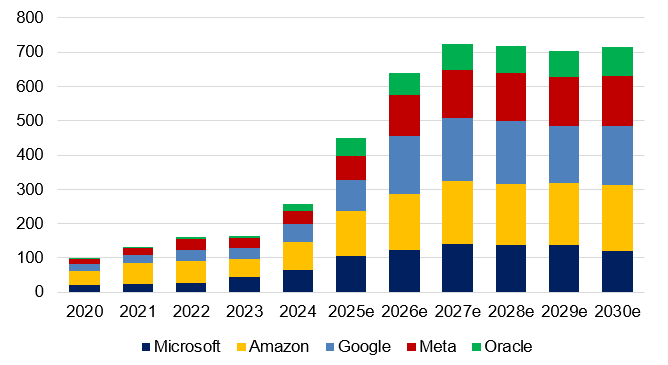 Die großen US-Cloud-Anbieter (Hyperscaler) werden voraussichtlich bis 2030 mehr als 3 Billionen Dollar in KI-Infrastruktur investieren