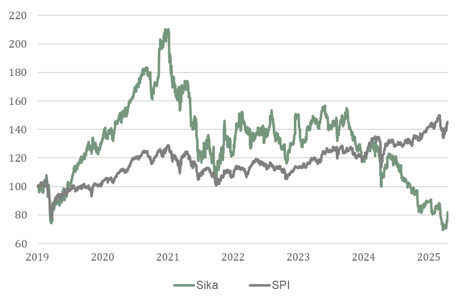 Über fast zwei Jahrzehnte war Sika eine der führenden Aktien am Schweizer Markt, dank einer tadellosen Umsetzung, konstantem Wachstum und der Fähigkeit, die Preise auch in schwierigen Umgebungen zu erhöhen, getragen von starken, strukturellen Trends. Der Kurs wurde lange mit hohen Multiplikatoren gehandelt, gerechtfertigt durch die Qualität des Geschäftsmodells und das unerschütterliche Vertrauen in das Management.